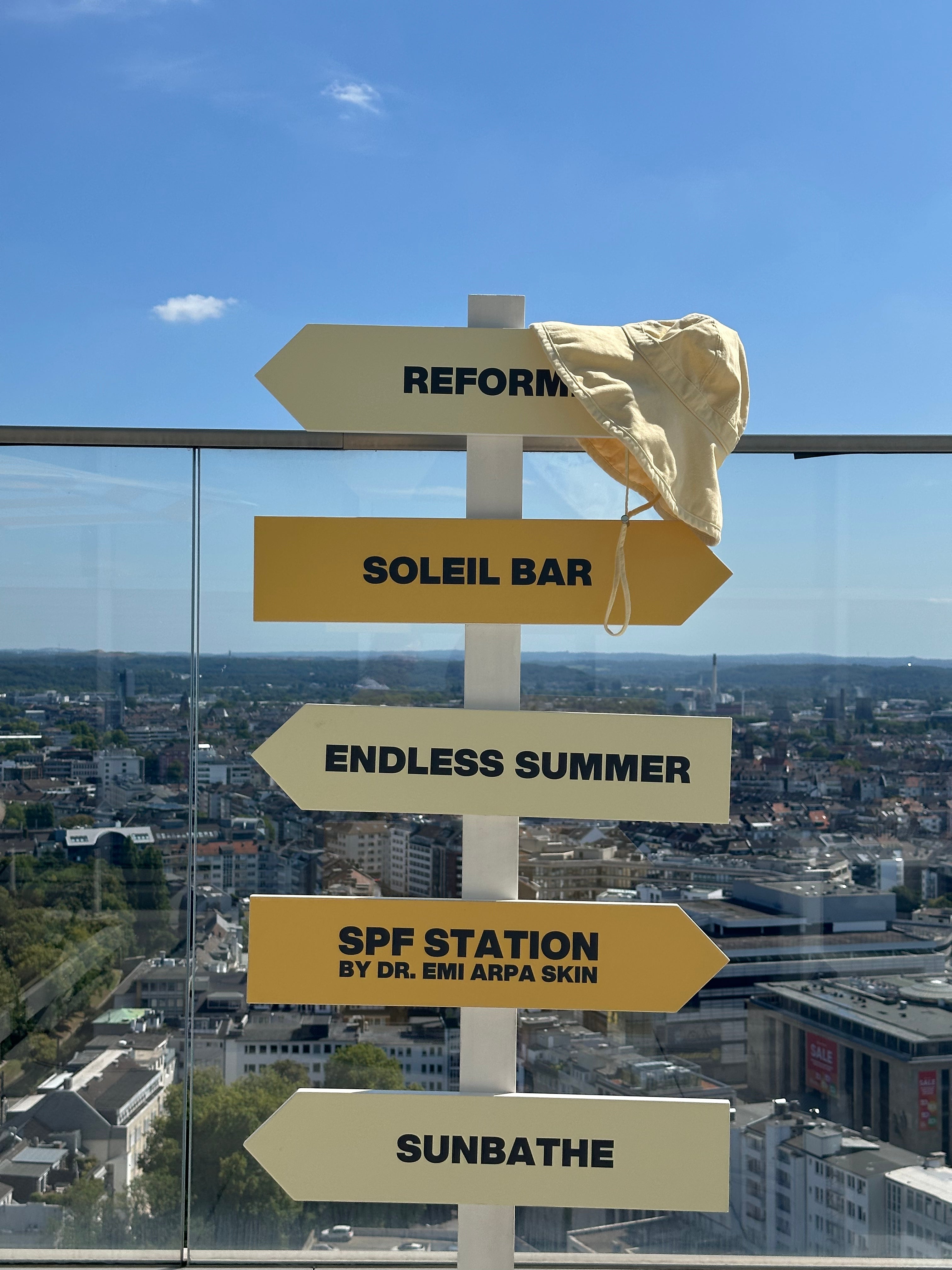 Im Rahmen der Kooperation mit 032C haben DR EMI ARPA SKIN und das Düsseldorfer Boutique-Fitnessstudio égoïste gemeinsam ein zweiwöchiges Pop-up-Konzept auf dem é soleil Rooftop des Dreischeibenhauses gelaunchedt, unter dem Motto „SPF before you sweat“.