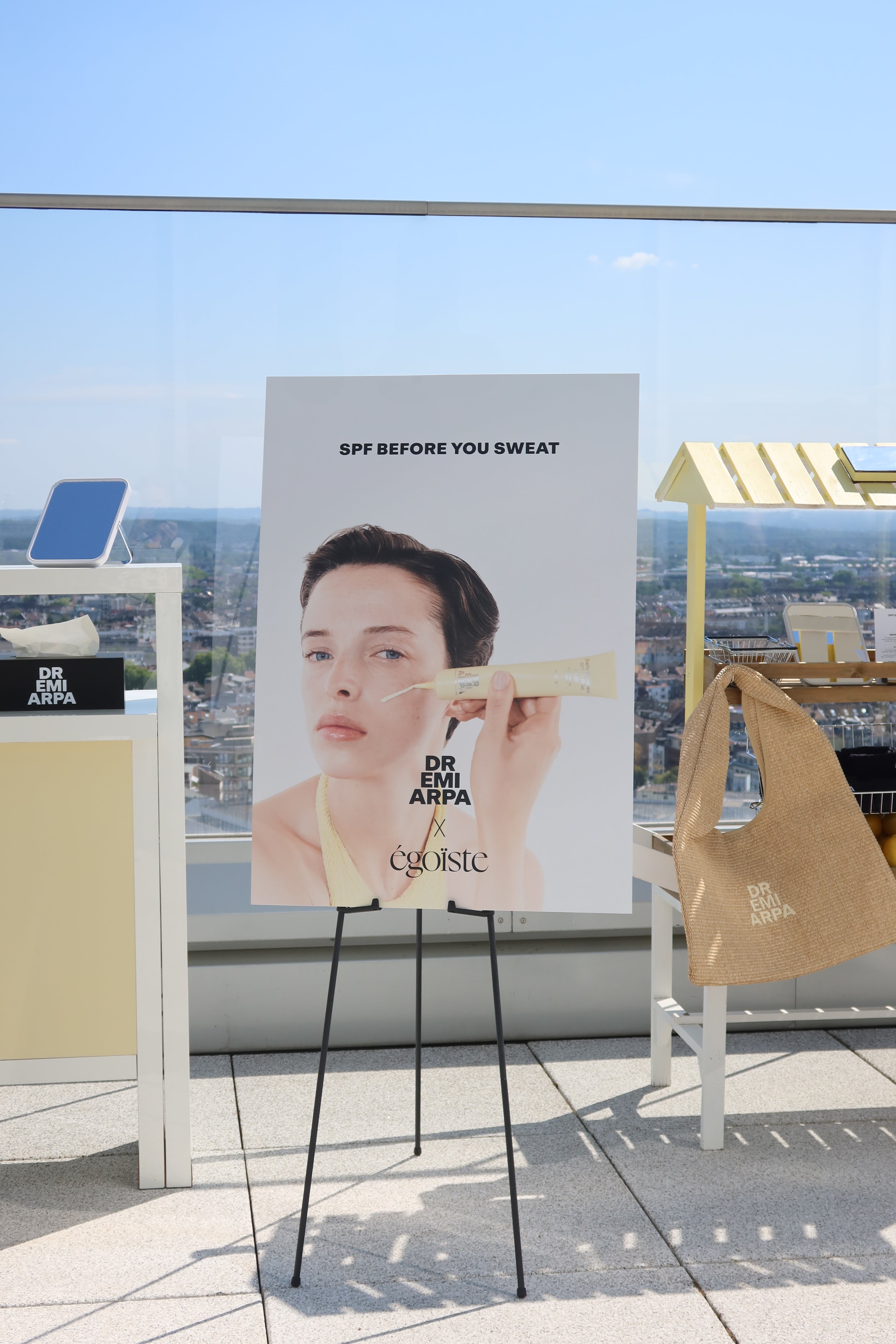 Im Rahmen der Kooperation mit 032C haben DR EMI ARPA SKIN und das Düsseldorfer Boutique-Fitnessstudio égoïste gemeinsam ein zweiwöchiges Pop-up-Konzept auf dem é soleil Rooftop des Dreischeibenhauses gelaunchedt, unter dem Motto „SPF before you sweat“.