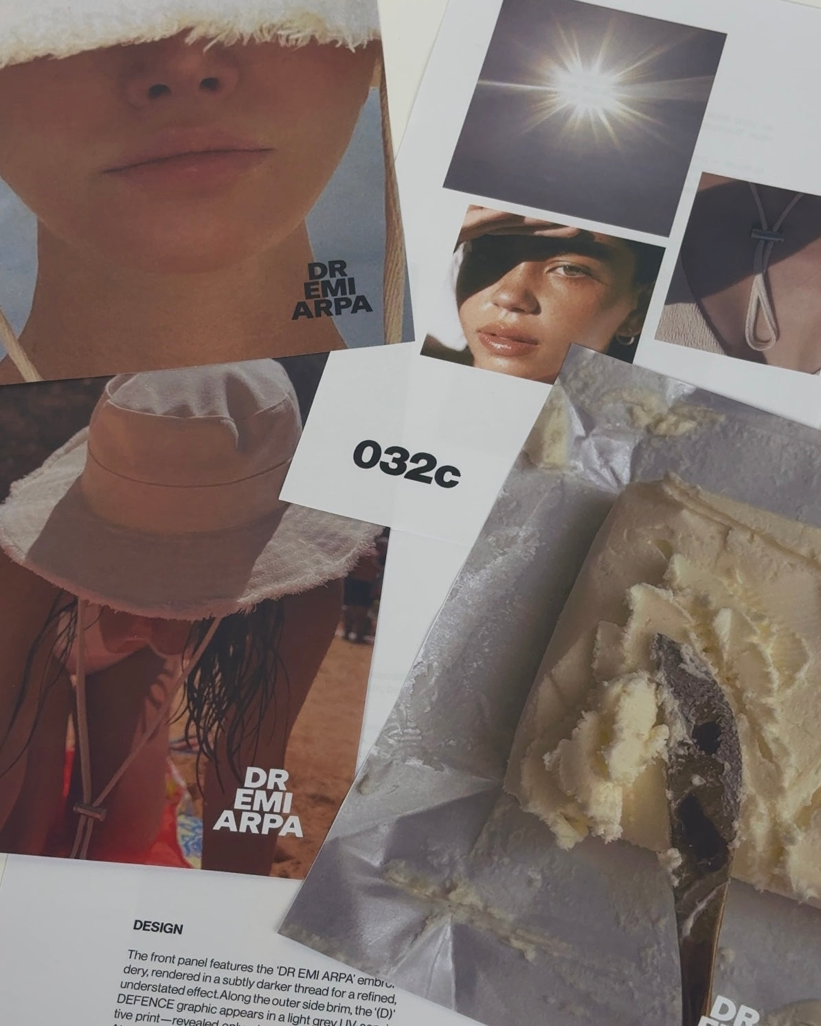 Die beiden Berliner Brands DR EMI ARPA SKIN und 032c präsentieren in einer Fashion-meets-Function-Geste ihr gemeinsames Highlight – den limitierten Summer Hat. Ein Accessoire, das Schutzschild und modisches Statement in einem ist – inspiriert vom Berliner Streetstyle.