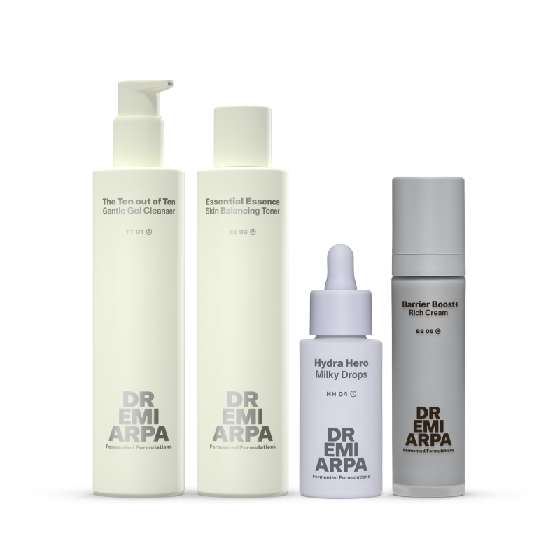 Barrier Boost+ Rich CreamPhenoxyethanol , Sodium Benzoate , Phenylpropanol , Levulinic Acid , Sodium Levulinate , Potassium Phosphate , Disodium Phosphate , Sodium Cetearyl Sulfate , Ethylhexylglycerin , Sodium Chloride , Xanthan Gum , Propanediol , 2,3-Butanediol , Sorbitan Laurate , Glyceryl Stearate , Hydroxypropyl Cyclodextrin , Hydroxyethylcellulose , Tridecane , Citric Acid , Lactic Acid , Helianthus Annuus Seed Oil , Simmondsia Chinensis Seed Oil , Hydrogenated Lecithin , Tocopherol , Baicalin , Haematococcus Pluvialis Extract , Astaxanthin , Alpha-Glucan Oligosaccharide , Cholesterol , Ceramide EOP , Ceramide NG , Ceramide AP , Ceramide AG , Ceramide NP , Carnosine , Acetyl Dipeptide-1 Cetyl Ester , Palmitoyl Tripeptide-38 , Copper Tripeptide-1 , Ectoin , Butylene Glycol , Inulin , Squalane , Octyldodecanol , Hydrogenated Coco-Glycerides , Undecane , Lactococcus Ferment Lysate , Glycerin , Coco-Caprylate , C32-54 Isoalkane , Butyrospermum Parkii Butter , Bifida Ferment Lysate , Prunus Amygdalus Dulcis Oil , Cetearyl Alcohol , Aqua ,